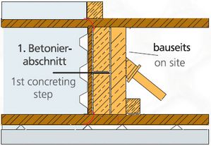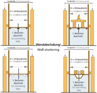 ... installing the elements in such a way that the initial concrete amount presses the shuttering against the reinforcing steel rods. The MSL shuttering elements must be fixed permanently and immovably between the upper and lower - or outer -reinforcement layers.
