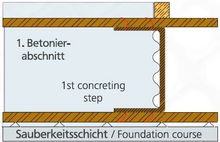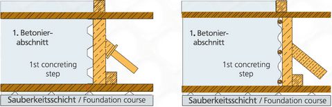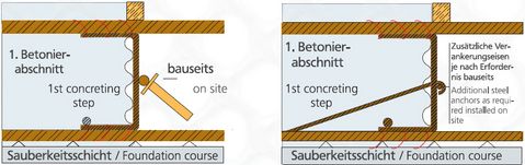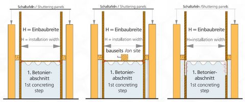 Wir empfehlen die Elemente immer so einzubauen, dass der Beton des ersten Betonierabschnittes das Schalblech gegen die Verstärkungseisen drückt.