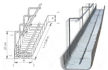 Das System besteht aus U-förmig gekanteten, wellprofilierten Lochblechelementen. Fuß- und kopfseitig sind Baustähle angeschweißt, die zum Befestigen des Fugenbandes dienen. Die Elementlänge beträgt 3,4 m. Elementbreite, Aufkantungs- und Halterhöhe werden vom Kunden vorgegeben.