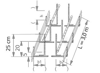 Das 3,0 m lange Fugenblechführungselement besteht aus 4 Fugenblechhaltern, die durch 2 Längseisen fest miteinander verbunden sind. Die losen, wellprofilierten Lochbleche werden an der aufgehenden Bewehrung befestigt. Das Fugenblech wird bauseits in die Fugenblechhalter eingeführt und hierdurch in der Lage sicher gehalten.